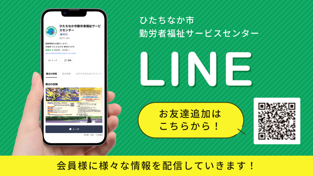 公益財団法人ひたちなか市勤労者福祉サービスセンターは、市からの助成を受けて中小企業単独では実施することが難しい、会員の皆様が生涯にわたり豊かで安心した生活をおくることができるよう『従業員の福利厚生』の充実をお手伝いする団体です。